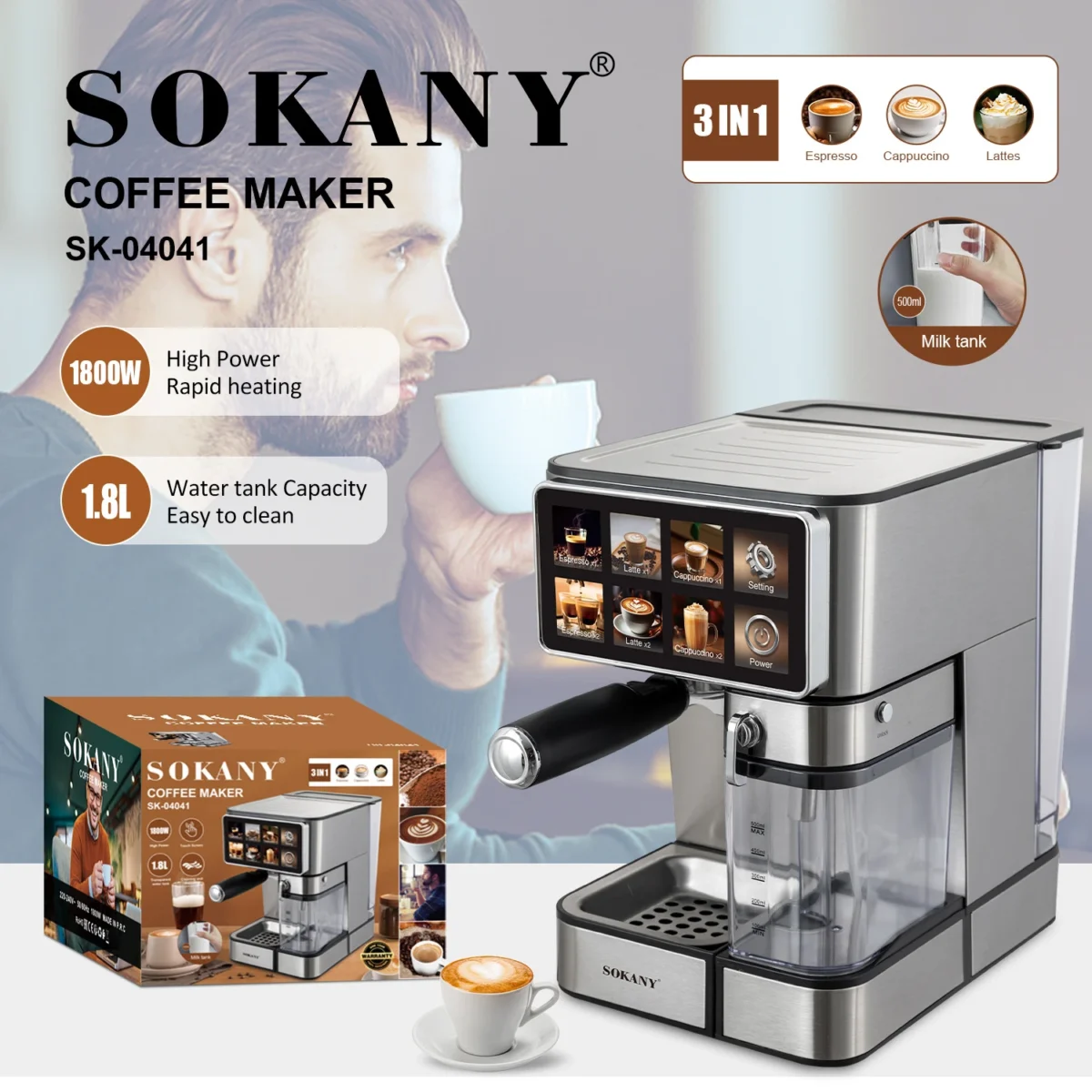 ماكينة سبريسو سوكاني مزودة بتانك حليب 20 بار Sk-04043