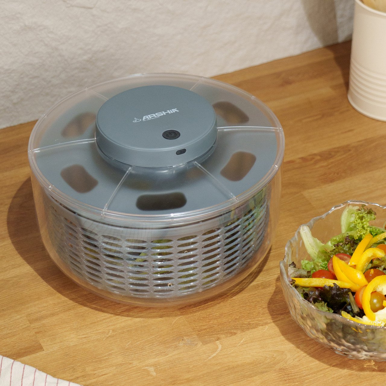 مجفف الخضروات Arshia Rechargeable Spinner سعة 6 لتر موديل AR-3617 هو تطور عصري لأداة المطبخ الكلاسيكية. بلمسة زر واحدة، ستحصلين على خضروات جافة تماماً من الماء، مما يجعل السلطات طازجة لفترة أطول والصوصات تلتصق بالأوراق بشكل أفضل.