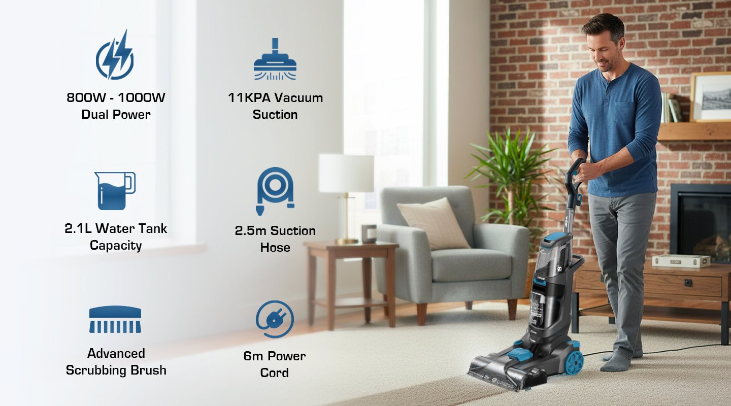 مكنسة غسيل سجاد ارشيا قوة تصل من 800 ل 1000 وات AR-3061