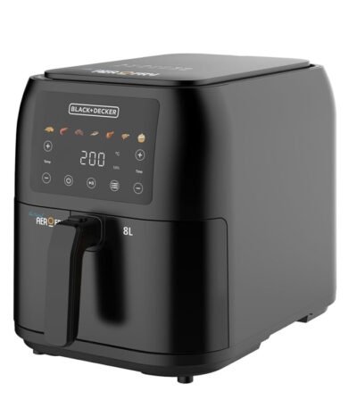 قلاية بلاك آند ديكر ديجيتال سعة 8 لتر بقوة 1700 وات - السعة العائلية الأكبر لطهي صحي ومقرمش. انتقلي بمطبخكِ إلى مستوى جديد من الكفاءة مع Black + Decker SAF80. تتميز هذه القلاية الهوائية بحجم جامبو 8 لتر وشاشة لمس ديجيتال بـ 10 برامج طهي مسبقة الضبط، مما يتيح لكِ تحضير دجاجة كاملة أو وجبات عائلية ضخمة بضغطة زر واحدة. بفضل قوة 1700 وات وتقنية توزيع الهواء السريع، ستحصلين على نتائج ذهبية مقرمشة من الخارج وطرية من الداخل بأقل كمية زيت، لتستمتعي بمذاق القلي دون الشعور بالذنب.