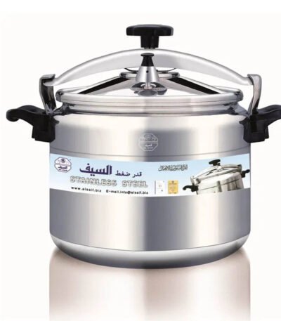حلة ضغط السيف إستانلس ستيل 15 لتر - العملاق الحقيقي للولائم والعزومات الكبيرة. استمتعي بالسرعة والجودة مع السيف 96015. تتميز هذه الحلة بسعة ضخمة تصل إلى 15 لتر، مما يجعلها مثالية لطهي الذبائح والكميات الكبيرة دفعة واحدة. مصنوعة من الفولاذ المقاوم للصدأ (18/10) لضمان توزيع حراري مثالي وعمر افتراضي طويل. بفضل نظام الأمان المتطور وصمام الضغط الدقيق، ستنجزين أصعب مهام الطهي في ثلث الوقت المعتاد، لتكون رفيقكِ الدائم في المناسبات الكبرى بأداء احترافي لا يضاهى.